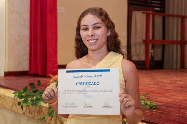 “Quero agradecer a toda a equipe do Qualifica Mais, porque graças ao curso que eu fiz de Agroecologia, eu consegui passar na vaga de Agente Rural em Aratuba, onde havia apenas quatro vagas. E eu consegui passar com nota máxima na prova, então isso só mostra a qualidade e a eficiência que os cursos trazem pra nós. Que venham mais cursos”, comemorou Marina Kellen Lima, aluna certificada do projeto Qualificar+