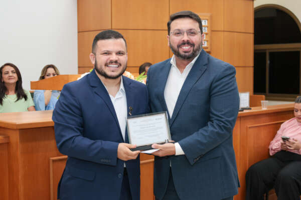 A entrega ocorreu durante Sessão Solene da 2ª Sessão Legislativa Ativa da 10ª Legislatura e a homenagem concedida ao secretário foi proposta pelo vereador professor Eryck Dieb.